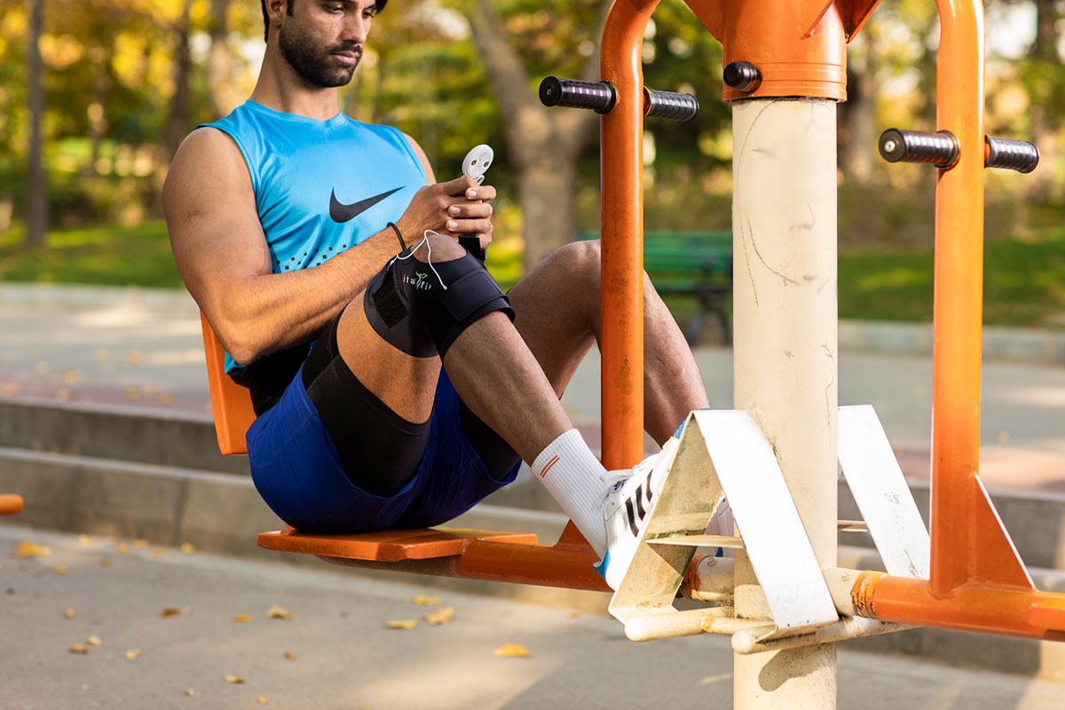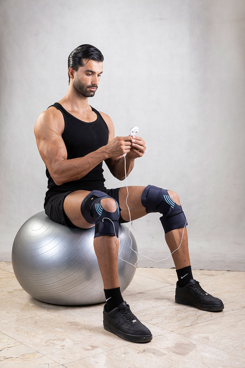 The EMS knee brace is used in the knee area to strengthen and build muscle in the quadriceps and hamstring muscles, and as a result, reduce pain in the knee area. It is best to do it as a supplement alongside aerobic or strength exercises to help the muscle building process.