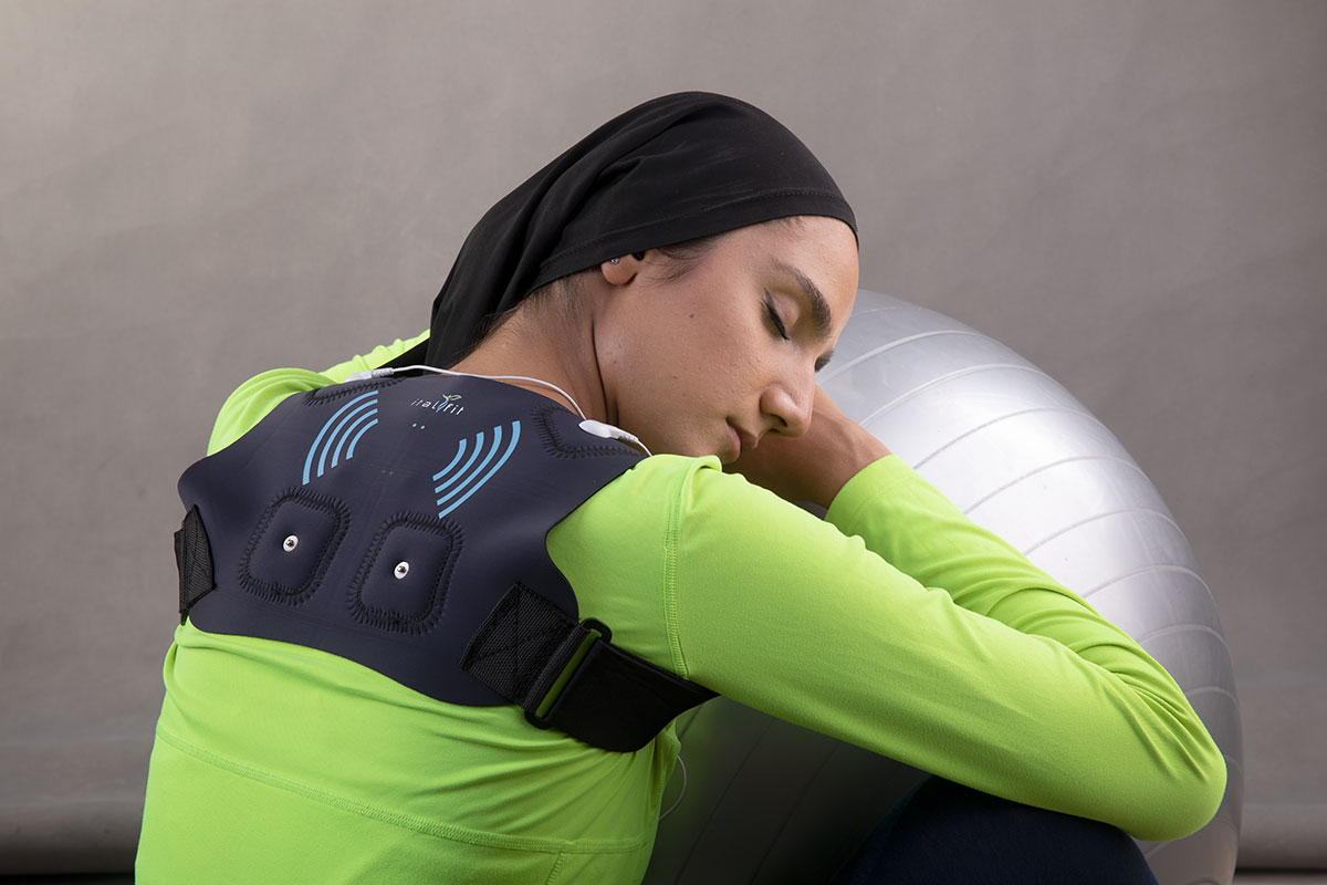 The gentle electrical impulses of the shoulder strap on the outer surface of the skin stimulate the deltoid, trapezius and latissimus dorsi muscles without putting pressure on the back.